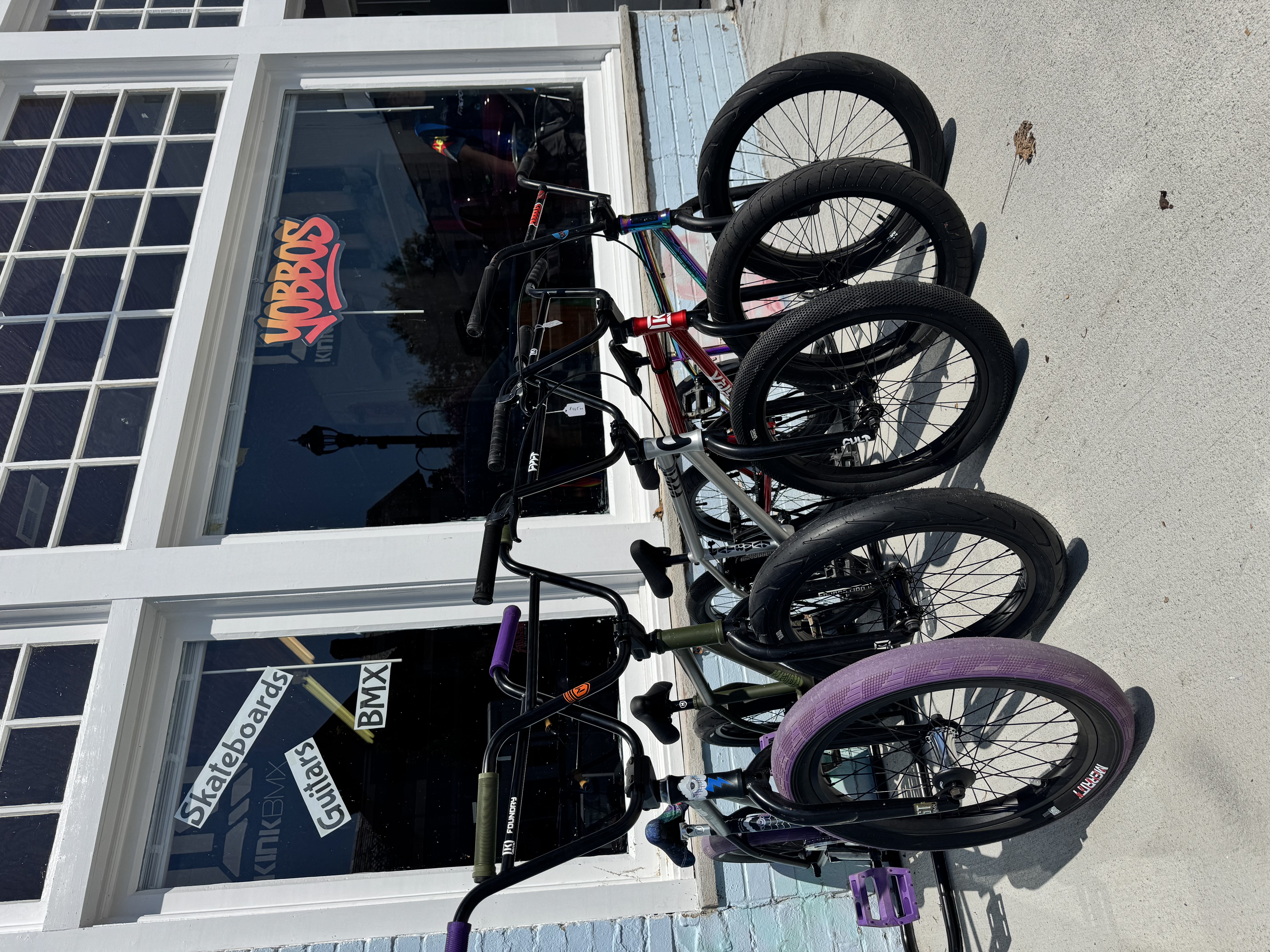 We keep a rotating lineup of BMX bikes ready to ride, plus the parts and protection that keep you on your bike and out of the repair pile.